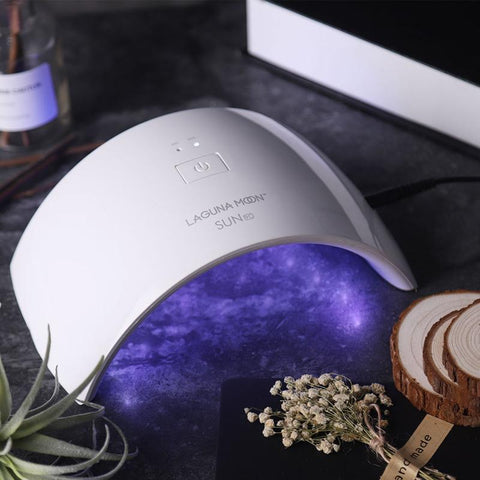 Gel nail polish needs to cure under a UV lamp. It’s worth it to invest in a high-quality UV lamp so your nails can cure properly, quickly, and with as little damage to your nails as possible. Try the UV lamp By Lagunamoon.
